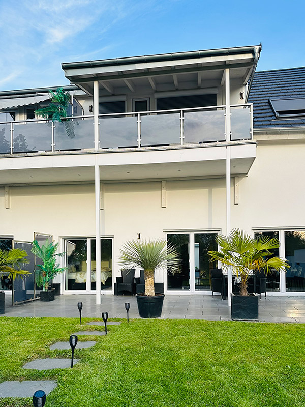 Das komfortabel eingerichtete 1-Zimmer-Appartement liegt im 1. Obergeschoss und hat einen großen Balkon mit Abendsonne und herrlicher Aussicht zum Kaiserstuhl und zu den Vogesen im Elsaß.